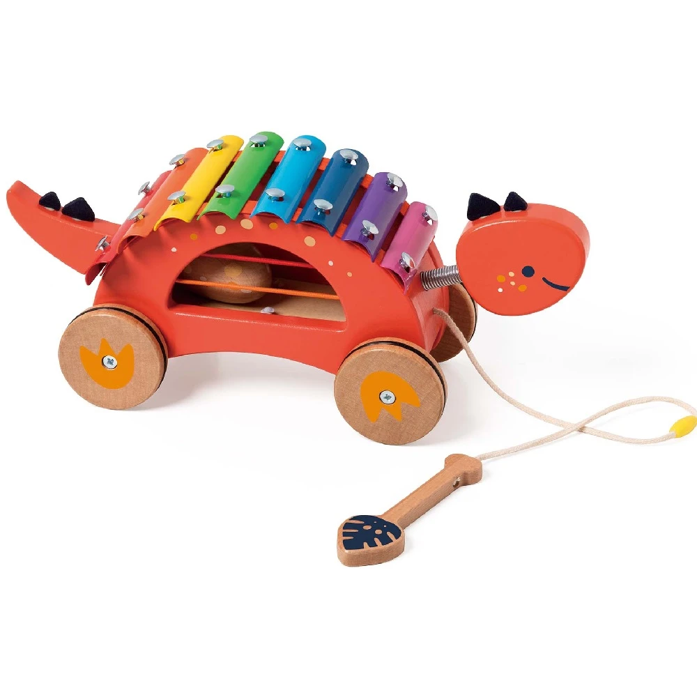 Not only does it have a pull string, so your child can pull it along the floor, but attached to the end of the string is a wooden beater, so your little one can use it to hit the xylophone on the dinosaurās back to make beautiful music!