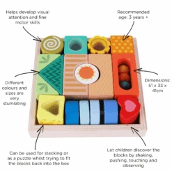 With all different colour and sizes these blocks will help children develop visual attention and fine motor skills.