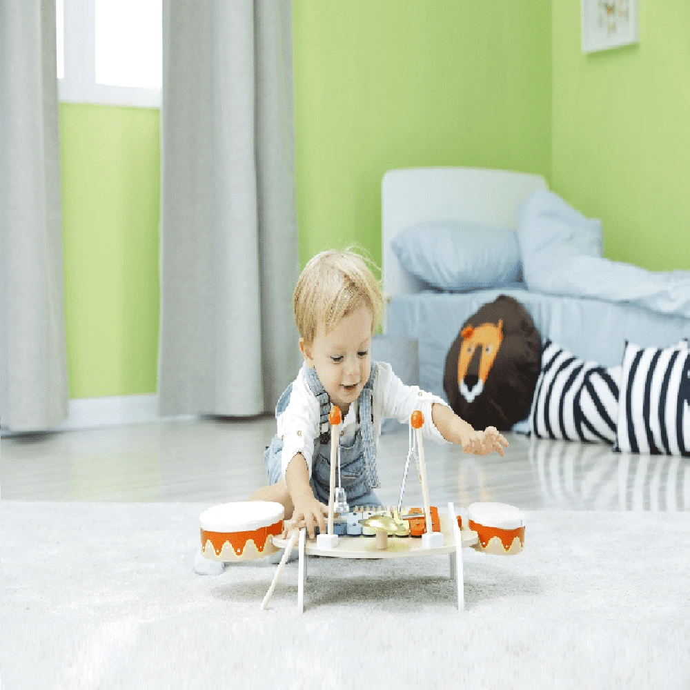 Keep little ones engrossed and enchanted for hours with this Classic World Music Table. The table includes 6 different instruments to inspire and engage children for hours. Beat the drums, ring the bell, strum the xylophone or make gentle sounds with the triangle. Beautifully constructed to a high standard, this children’s music set encourages hand to eye coordination as well as the early development of musical skills. Most importantly, fun is guaranteed.