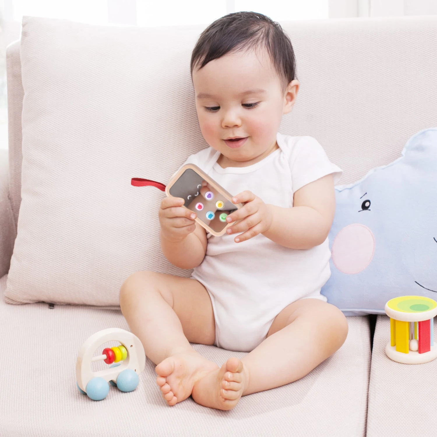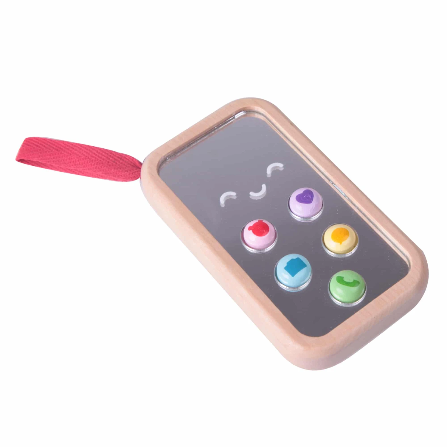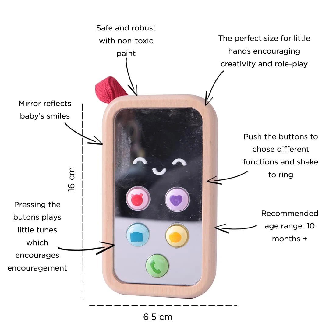 Hello! Try to call someone with this cute Classic World My First phone and catch up. The mirror front reflects the baby’s smile. Push down the values to choose different functions and shake to ring. Pressing the values plays little tunes which encourages engagement.