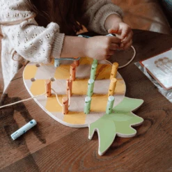 - The Pineapple Linking Game allows children to pull thread through different holes in order to create interesting patterns.