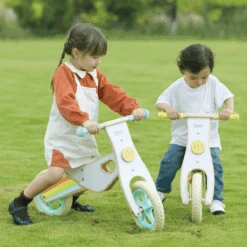 This Classic World Rainbow Balance Bike is made of sturdy solid wood. The handle bar is covered with rubber to provide more grips. The seat has a cushion layer to makes the biking more confortable. You can carry it easily by the wing shape hole. It can also adjust the height according to your children’s height. The wheels have rubbered material to protect your floor surfaces from scratches.