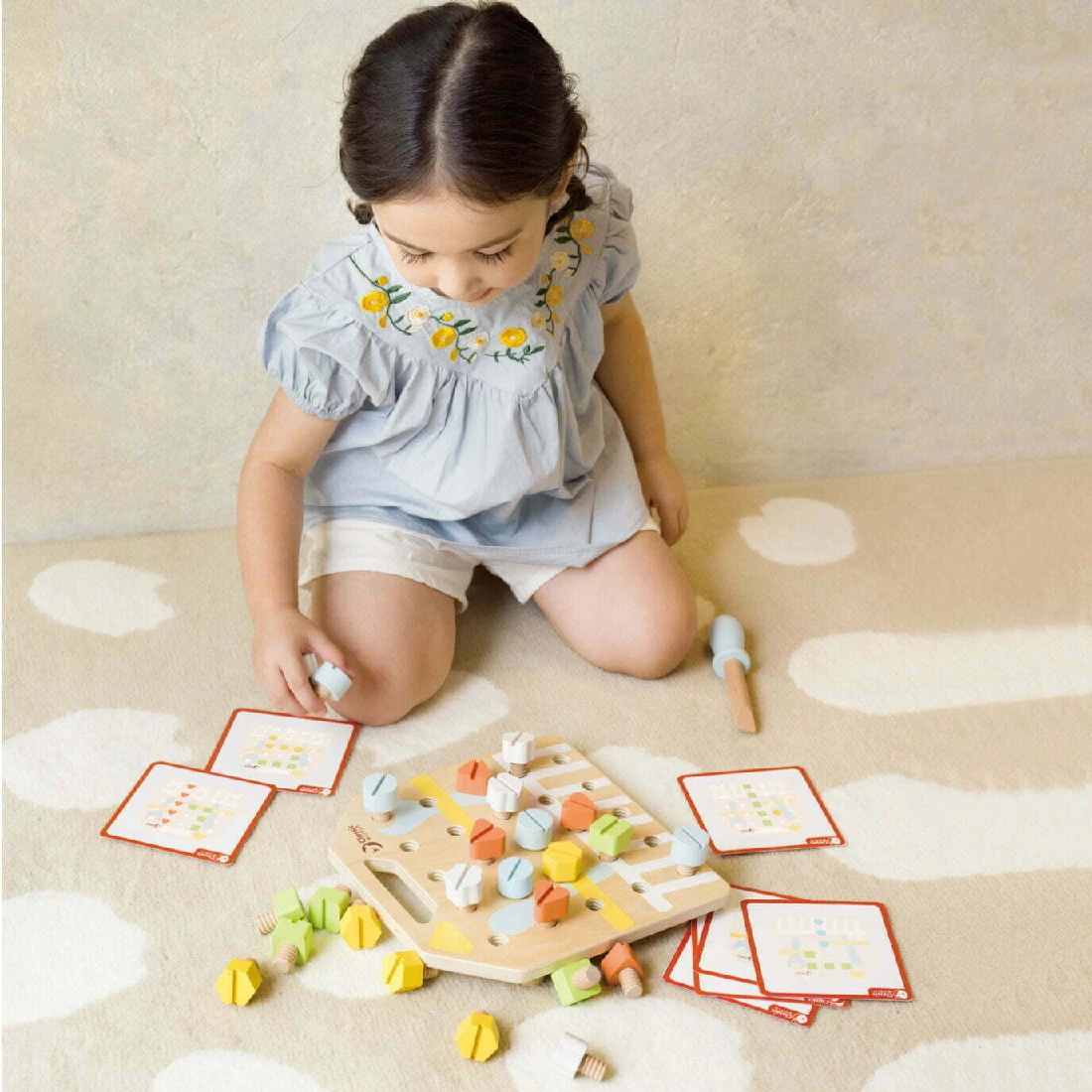 Children can improve their ability to recognise and distinguish colours and shapes, whilst strengthening their fine motor skills. The Screw Board also includes test cards which enhance the gameplay!