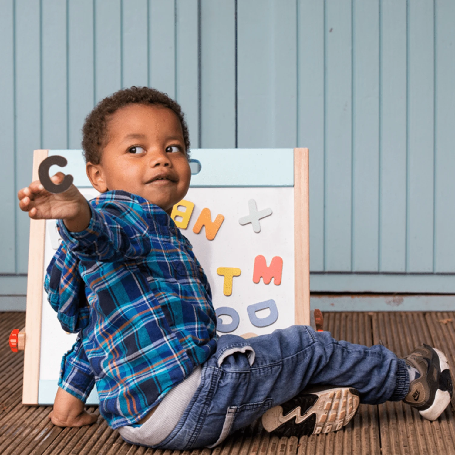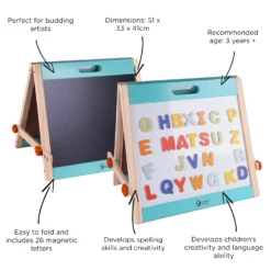 This Classic World Table Top Easel is perfect for budding artists. It is easy to fold up and includes 26 magnetic letters and has a chalkboard and magnetic whiteboard for children to create on. It helps to develop children’s creativity and language ability. Encourage children’s imagination in an artistic form