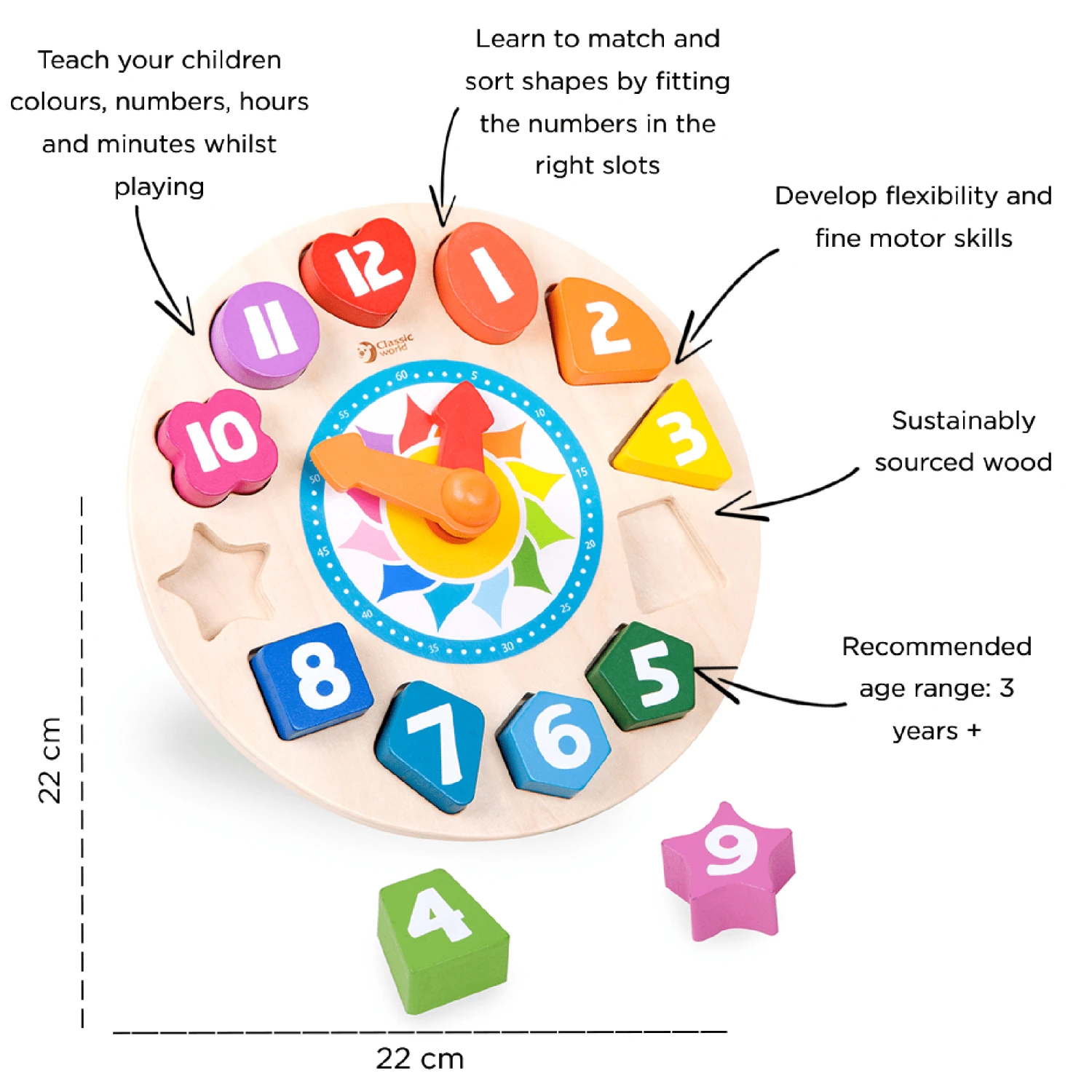 Classic World Tic-Tac Clock Game will help your child learn colours, numbers, hours and minutes as they play with this multi-activity clock. It helps to develop flexibility and fine motor skills. Their commitment goes beyond just making great toys they practice an environmentally safe production process and do more than their part in making a safe and clean world for children to grow up in.