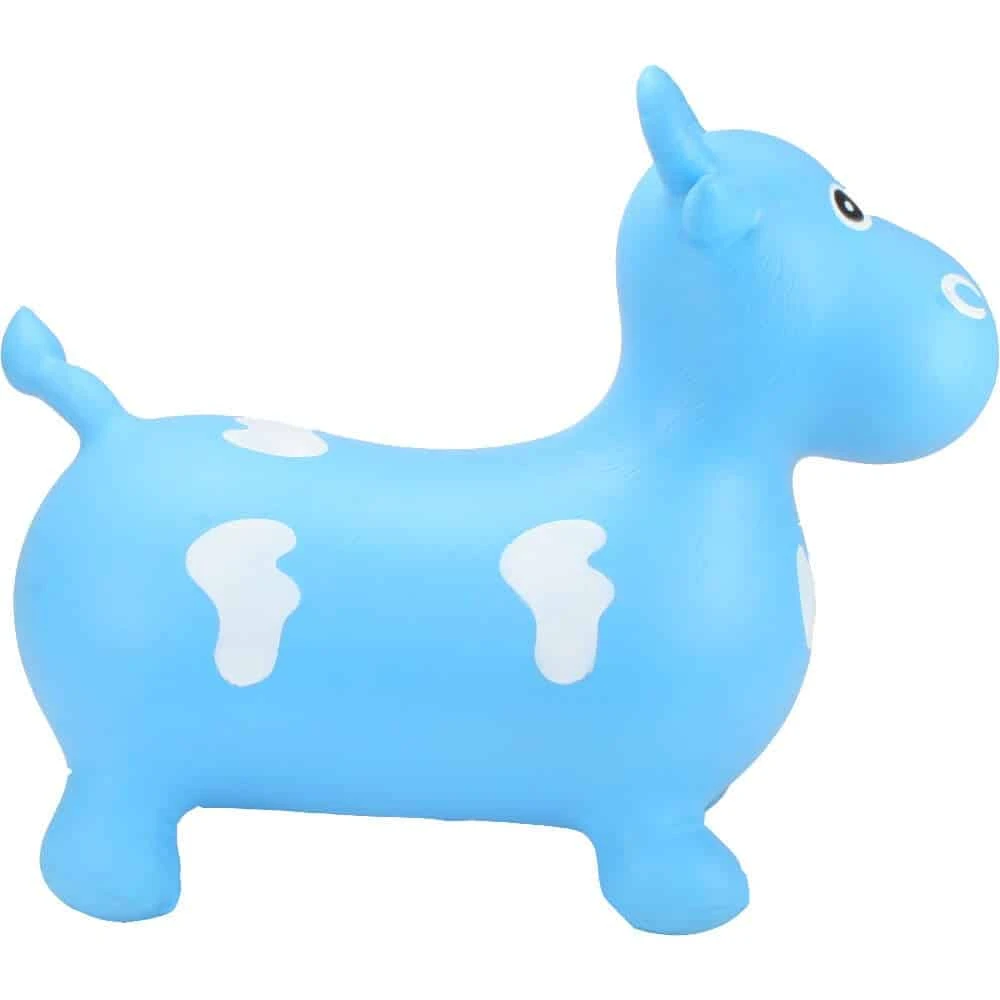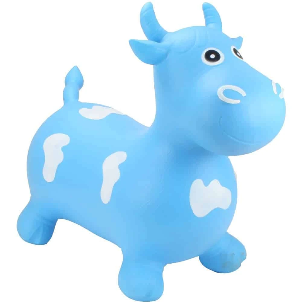 Happy Hopper Big Face Blue Bull is a bright, inflatable animal toy.