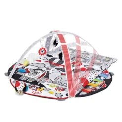This is thanks to the contrasting toys that rustle, make sounds and rattle when touched. Your little one will also learn the cause and effect relationship between touching a toy and the toy making a sound. The cards included in the set can be put into a special plastic pocket on the side of the mat. The set includes a sensory ball that your child will love playing with. It’s large, multi-coloured and has interesting values and patterns.
