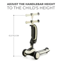 Kinderkraft Scooter HALLEY Stone White 2-in-1 bike. This is a bike and a three-wheel scooter in one product. The seat can be lifted or lowered easily and can be folded parallel to the handlebar. This allows you to quickly transform HALLEY from a balance bike to a three-wheel scooter and vice versa.