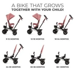 AVEO grows with your child β itβs suitable for babies from 9 months old. The swivel seat, practical hood, bumper, and adjustable straps, make this tricycle safe and a perfect excursion companion. It has 6 configuration options (no tools required to dismantle its parts), making it easy to adjust the tricycle to your childβs abilities.