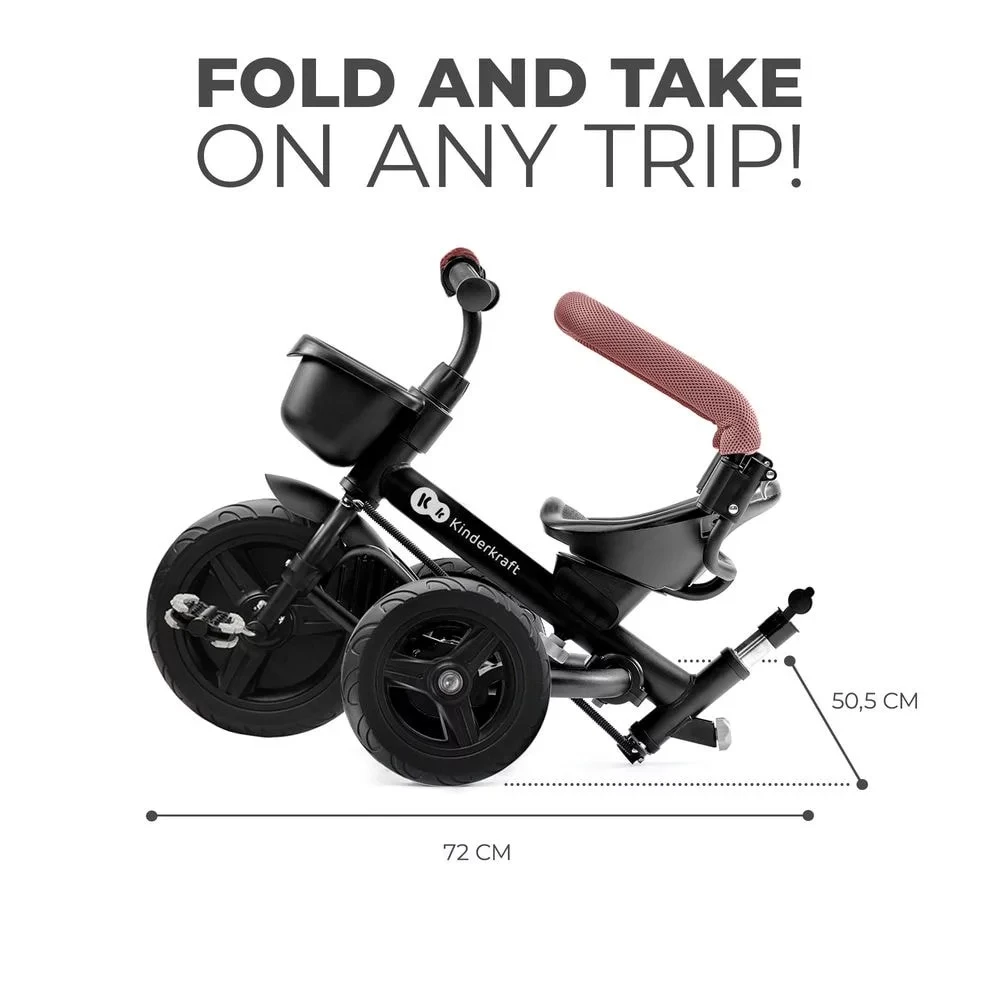 Kinderkraft Tricycle AVEO Rose Pink is a tricycle that combines fun with learning how to ride. It provides practical, convenient solutions for parents, allowing them to comfortably steer the tricycle during walks.