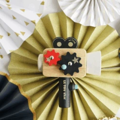 Let little imaginations run wild as they find their inner movie star with this stimulating wooden toy an ideal way to encourage language and social development skills. Designed by our talented toy makers, this vintage style camera has striking look complete with spinning cogs and a kaleidoscopic lens for extra layers of discovery.