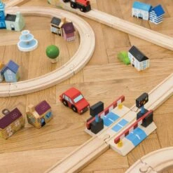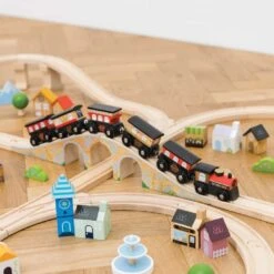 With a whopping 180 pieces, endless day after day play awaits. Featuring 2 connectable trains complete with an extensive collection of rubberwood tracks. Accessories include a Ferris wheel, 2 bridges, a car, a truck, a train station, a crane, boats, a variety of buildings, shops, houses and 3D outdoor elements.