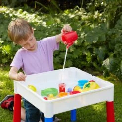 The deep table base is designed to be suitable for sand and water play. Also comes with a handy plug so draining and cleaning the table is a breeze. When children are not playing with sand or water, the base is brilliant for additional storage.