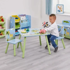 This multipurpose kids’ activity table with 2 chairs is super quick and easy to assemble – no tools needed. Materials are very sturdy so don’t be afraid to use a little extra force securing the legs in place – this is a safety feature, so they don’t come loose. Also, it is super easy to clean by using a damp cloth, and it is like the mess never happened.