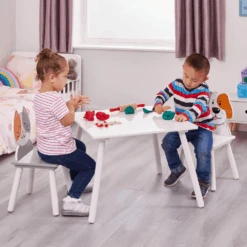 The cat and dog table and chair set comprise of a white table and our friendly cat and dog-themed pair of chairs. The perfect setting for playing, reading, drawing, doing homework, and even eating. The stylish and subtle finish really will become a standout feature in your kid’s bedroom and playroom.