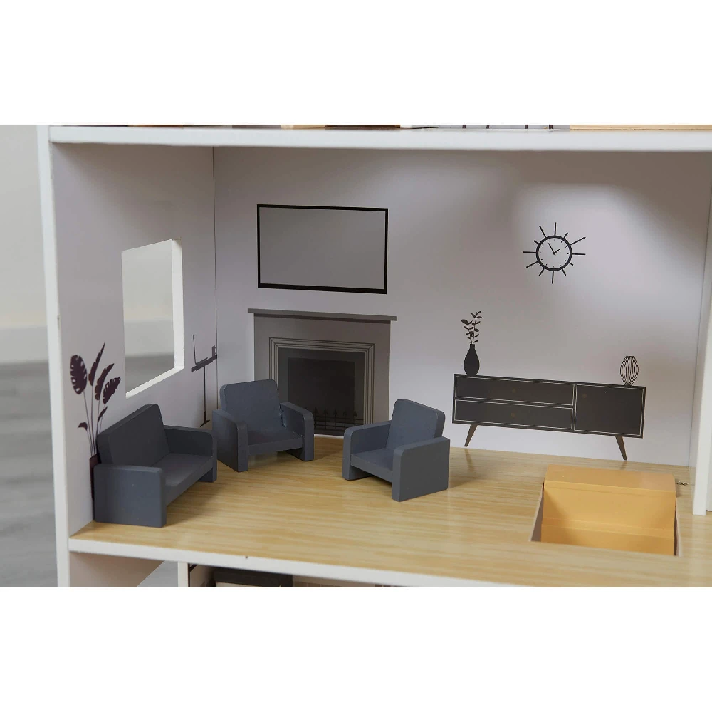 Liberty House Toys Contemporary Dolls House with 18 Handcrafted Wood Furniture Accessories