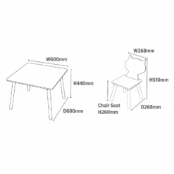 The tabletop is made from sturdy wood with solid pine wood legs for extra stability. Pinewood is known for impact resistance and so is perfect to withstand the rough and tumble of the playroom. Here, children are the key focus of everything we do. You can rest assured that your children will be safe and comfortable. The tabletop has a lacquer coating to protect against scratching, and as a result, it is easy to clean by simply using a damp cloth. With rounded corners for additional safety.