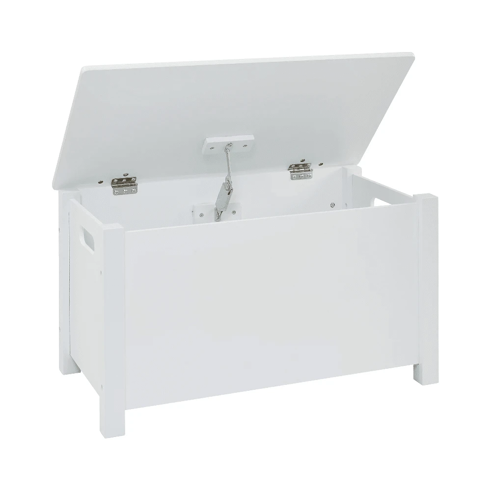 Constructed from long-lasting wood materials making this toy box is durable and sturdy. Safety is our number one priority, so this toy box has been designed carefully so little hands can safely lift the lid without the worry of trapping little fingers. Even more importantly, to avoid the lid slamming shut, there is a soft-closing safety hinge inside the toy box.