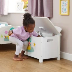 Toy boxes are easy for children to use as all their playthings can be kept in one space and can be tidied up quickly. Because this toy box is compact it is easy to move from room to room if required.