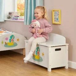 Liberty House Toys Kid’s Wooden Mermaid Toy Box is a functional and practical storage solution for your child’s bedroom or playroom. Store costumes, toys, shoes, books, the possibilities are endless. With its subtle but stylish design and neutral colour it can fit effortlessly into any decor.
