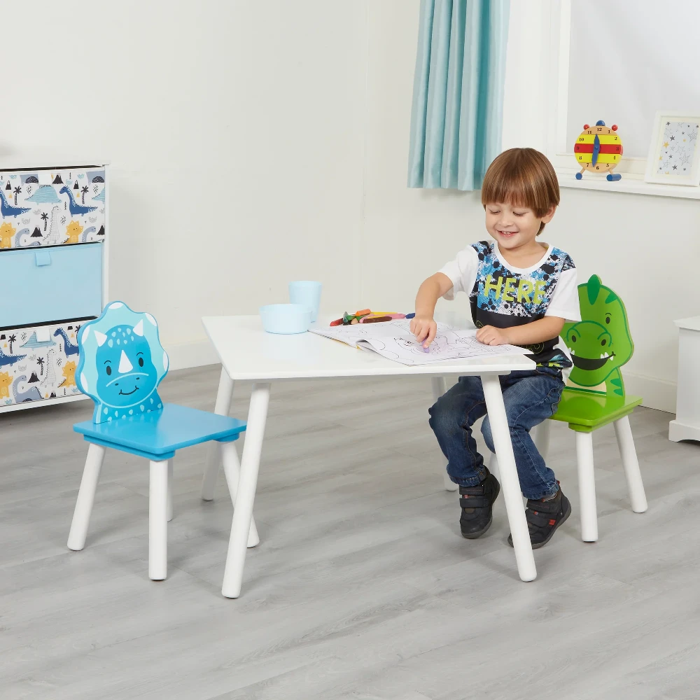 The dinosaur table and chair set comprise of a white table and our friendly, fun dinosaur characters. The perfect setting for playing, reading, drawing, doing homework, and even eating. The stylish and subtle finish really will become a standout feature in your kidās bedroom and playroom.