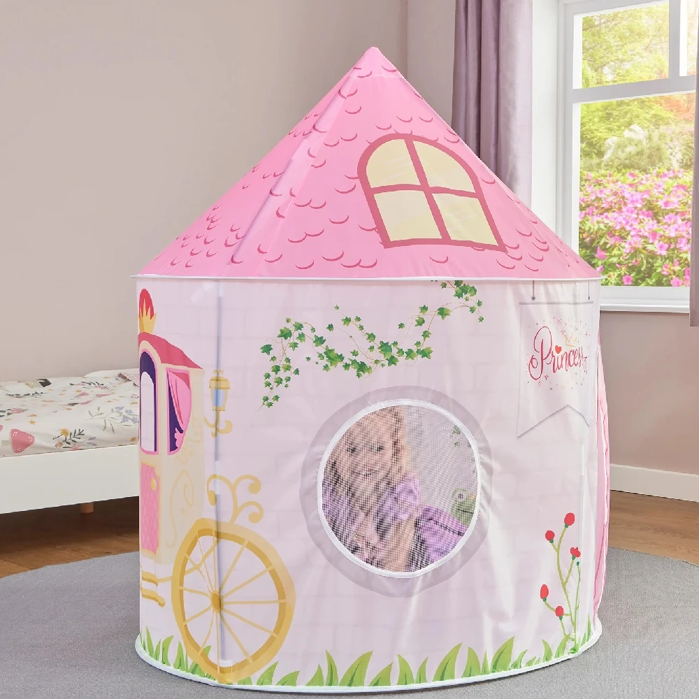 - Kids Princess Play Tent is made of polyester and fibreglass pole with steel wire, and it comes flat packed with easy-to-follow assembly instructions. Item includes storage bag for when you want to fold it away.