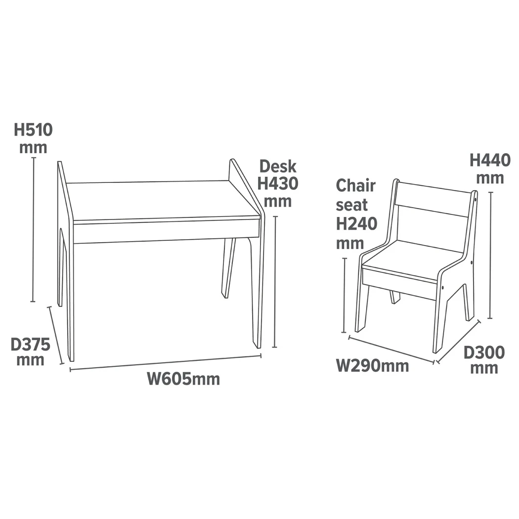 Cleverly designed with raised sides, preventing items from sliding off either side of the table as your child plays. Wood melamine tabletop is scratch resistant.