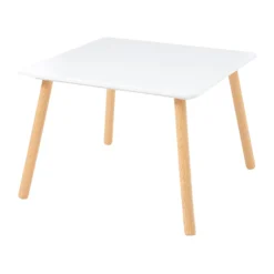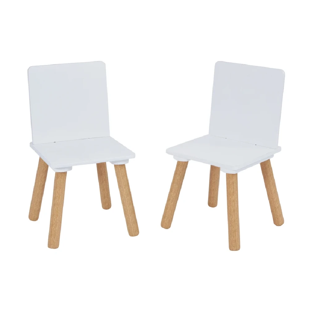 The white and pinewood table and chair set has solid beechwood legs which are sturdy and impact resistant. All corners are rounded for safety and comfort. Supplied complete with 2 chairs so a friend or sibling can join in the fun too.