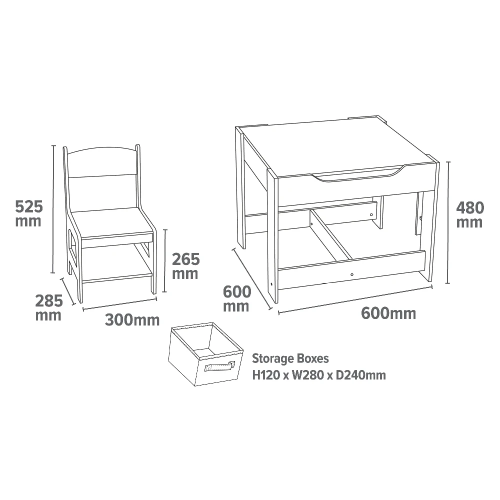 Needing to save space but offer your child something more than just a table? This set is for you, from day to day use to additional storage its everything in one.