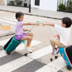 The Luggage Micro Scooter Trike Suitcase – Teal Green is a stylishly designed multi-functional travel gadget that makes travelling a breeze. Children from the ages of 18 months can sit comfortably and contently on the seat part of the luggage.