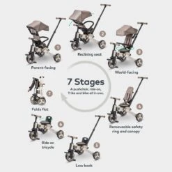Stage 5: Tired little legs. I’ve got you mode. Low back forward, facing ride-on with parent handle for older independent explorers who need a helping hand.