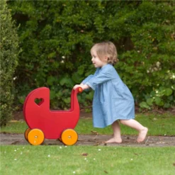 Your children won’t be able to resist The Moover Doll’s Pram Red. The toy design is both traditional and modern, with the focus on what children like to see, touch, and play with. Imitating grown-ups behaviour is essential for a child’s development and upbringing. These beautifully made Moover dolls prams will encourage your child to look after their dolls, keeping them tucked up and safe in the pram. They can go for walks and visit friends.