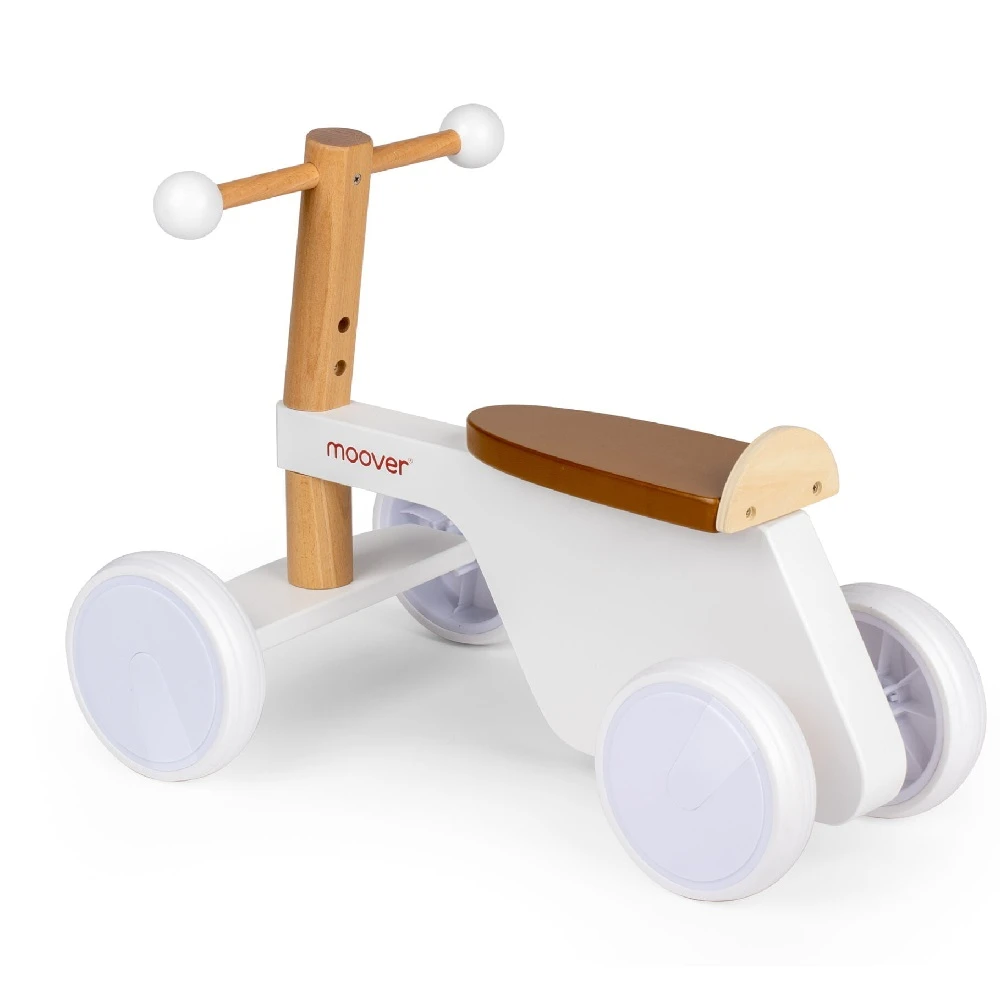 Moover Moover 4 Wheeled Ride On Bike White is made from solid wood. This lovely little bike is suitable from 18+Months. Its sturdy and stylish and comes in a beautiful green colour.