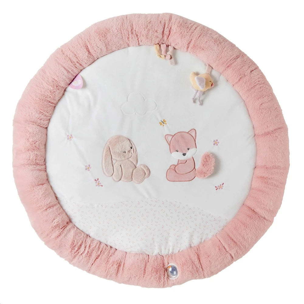 The Nattou Stuffed Playmat β Alice and Pomme is beautiful. Featuring five hanging toys overhead to fascinate your baby, comprising of soft cuddly toys, a soft ball and heart shape. All of these are detachable so can be used as stand alone toys as well as part of the gym.