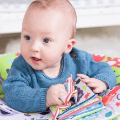 Suitable from nine months, your baby will love the soft fabrics and colourful designs. With its unique inflatable ring seat with detachable Velcro play tray, it is guaranteed to keep your little ones entertained with attached flower mirror and story book toys.