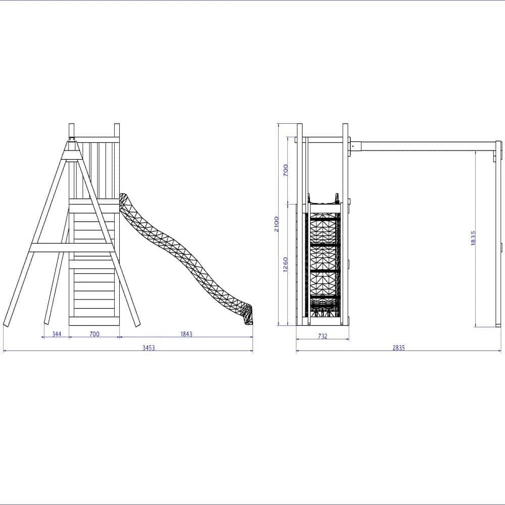 This set has a tower, ladder, rock climbing wall, slide, and two swings. This dynamic equipment offers endless fun and adventure. Crafted for durability and imaginative play, itâs a must-have for every garden.