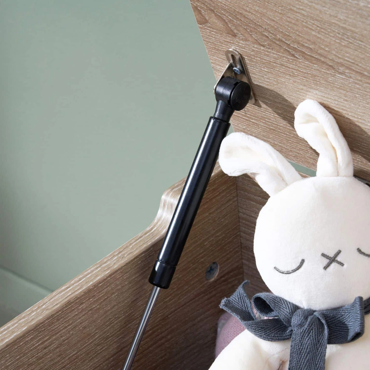 The Modena Toy Box comes with a colour matching wooden top cover equipped with slow closing mechanism, that reduces the risk of pinch curious little fingers. There are also special finger holes that allows for easy opening and safe closing from each side. The box can be also used doubles as a seating area for your child.