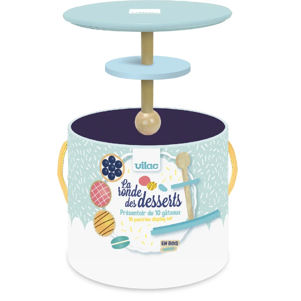 Fresh from the bakery, this wooden Vilac Pastry Display Set has a selection of 10 tasty treats, all ready to be placed on the beautiful pastry display plates. This is a great addition to any budding chefsβ wooden play kitchen! This is great for encouraging imaginative play and looks great on display in any playroom!