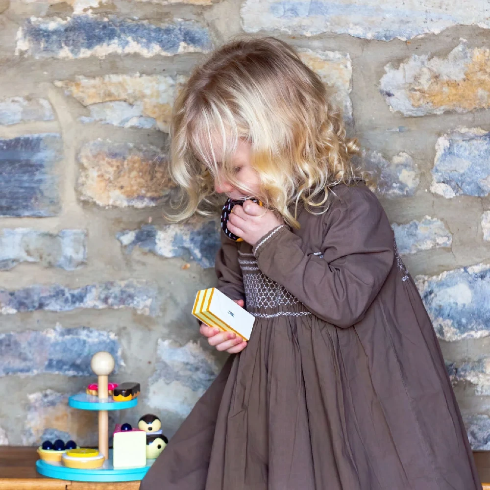 This set consists of 10 different wooden pastries, a pastry stand with it all being displayed in a beautiful sturdy box. There are endless ways to play with our wonderful wooden toys and hours of fun to be had whilst helping your little one develop crucial life skills whilst being great for imaginative play.