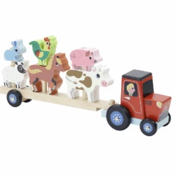 This beautifully designed wooden Vilac Tractor and Trailer with Animal Stacking Game is great for encouraging development, hand to eye coordination and shape sorting in young toddlers. Not only is it a shape sorter/stacking toy, the individual farmyard characters are great fun to play with on their own, encouraging imaginative and independent play.