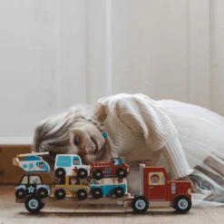 This beautiful Vilac Truck and Trailer with Vehicles Stacking Game comes with a gorgeous red trailer and a range of colourful vehicles. It will help to develop your child’s motor skills and hand-eye co-ordination, as well as encouraging imaginative role play and story telling! A great toy for transport-loving children.