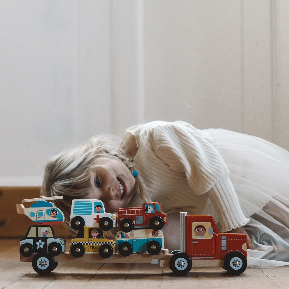 Vilac Truck and Trailer with Vehicles Stacking Game